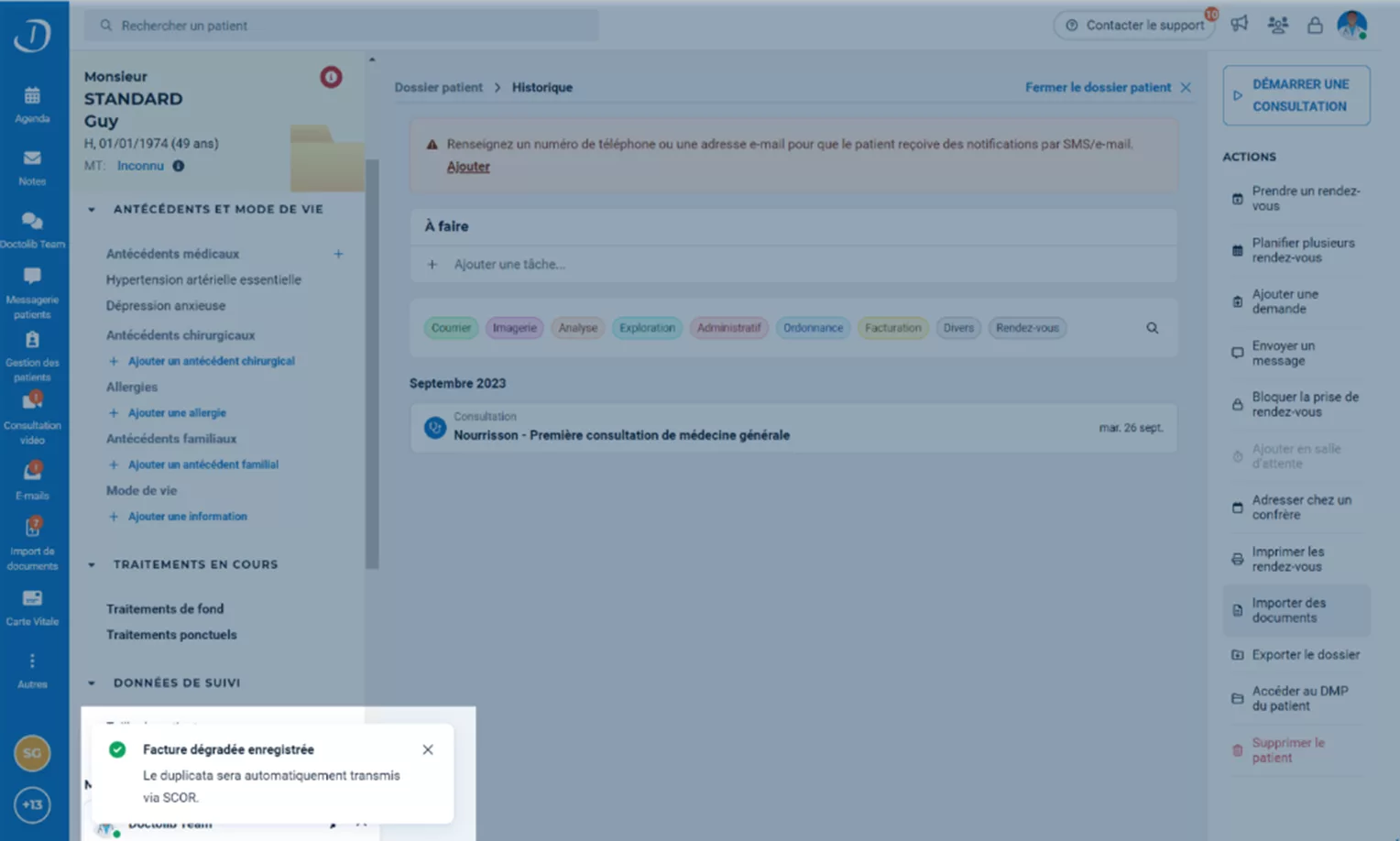 ✅ La consultation est facturée, vous pouvez retrouver et visualiser la facture dans la liste des factures de votre patient.