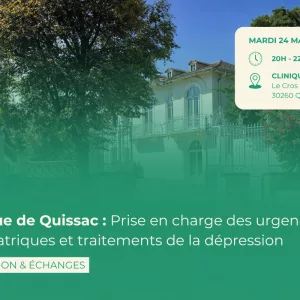 📅 Mardi 24 mars 2026🕐 20h à 22h📍 Clinique de Quissac – Le Cros, 30260 Quissac La Clinique de Quissac et la CPTS ECM ont le plaisir de vous convier à une rencontre professionnelle dédiée à l’actualisation des pratiques en psychiatrie, qui s’articulera autours de deux thématiques : La prise en charge des Urgences Psychiatriques […]